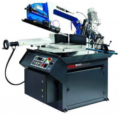 При переключении в ручной режим, можно управлять всеми функциями станка по отдельности. Благодаря наличию гидростанции, тиски могут регулироваться по усилию прижима. Высокие показатели производительности достигаются также вследствие использования частотного регулирования приводом вращения пилы, что позволяет плавно регулировать скорость резания от 15 до 90 м/мин, что также многократно увеличивает точность реза и стойкость ленточной пилы.